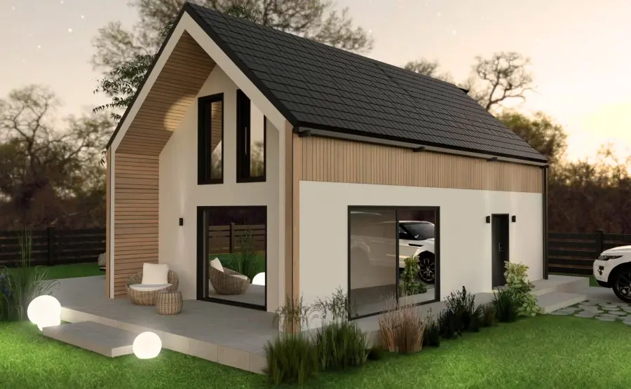 Dom stabilny jak skała, ale lekki jak powietrze. Parterowy, bez schodów, z miejscem na wszystko. Z opcją antresoli, fotowoltaiki, skuteczniejszej izolacji.